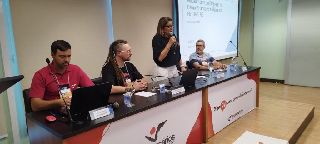 Encerrando o debate inicial, Magali Fagundes, secretária de Organização do Ramo Financeiro e Política Sindical da Contraf-CUT, destacou o desafio crescente de organizar um ramo financeiro cada vez mais fragmentado. Segundo ela, um mapeamento realizado pelo Departamento Intersindical de Estatística e Estudos Socioeconômicos (Dieese) evidenciou o encolhimento da categoria bancária e a expansão de fintechs, cooperativas, correspondentes bancários e trabalhadores terceirizados, que passaram a exercer funções dos bancários. “O objetivo do levantamento é permitir que sindicatos e federações conheçam o tamanho real de suas bases e orientem melhor suas estratégias de organização”, informou.