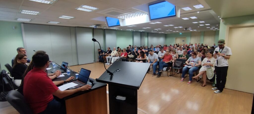 Diante desse quadro, ele defendeu a urgência de “aprofundar o debate do ramo como caminho para reconstruir a unidade da classe trabalhadora, enfrentar a redução da base sindical e fortalecer a capacidade de luta”. Fetzner citou alternativas como o consórcio entre sindicatos, a reestruturação do Movimento Sindical e o foco na mobilização, na unidade e na pressão política — e não apenas na judicialização. “A esfera judicial deve ser apenas uma instância”, defendeu.